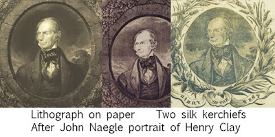 The Clay portrait is probably cut from a kerchief similar to these two drawn after a popular lithograph, probably done in Philadelphia in 1844.